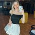 Detalhe: blusa de decote duplo dobrado ombro a ombro