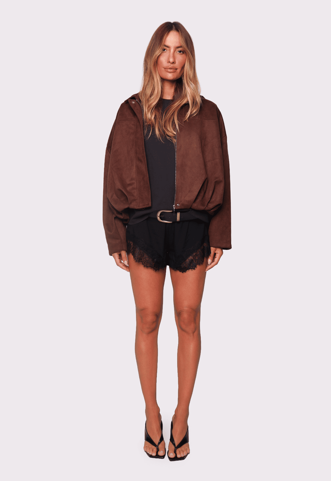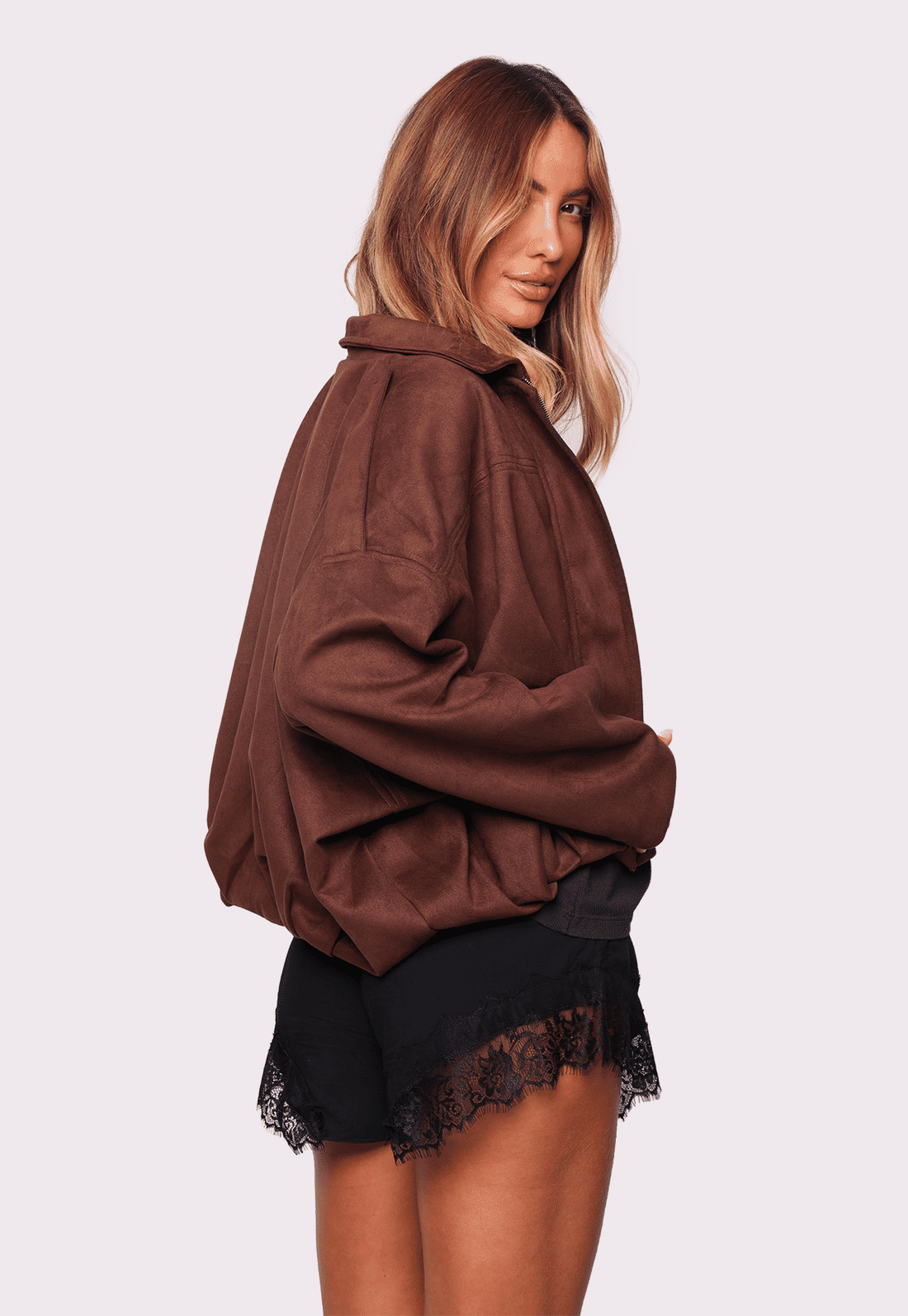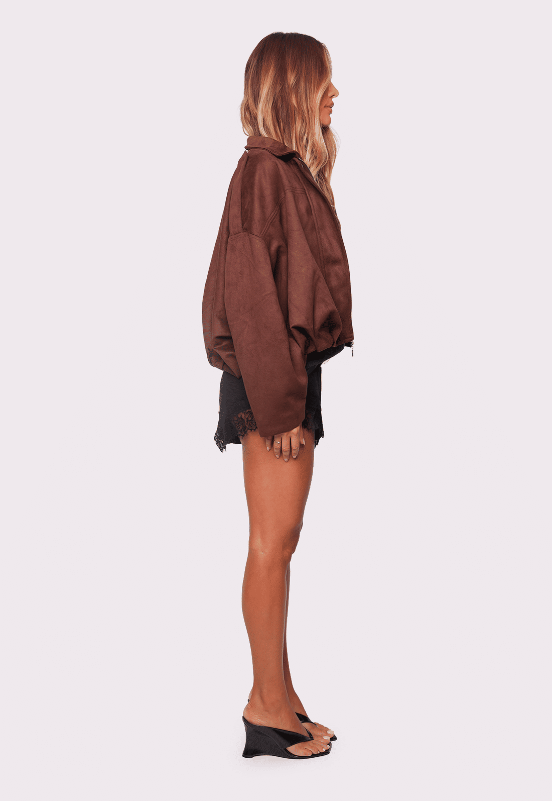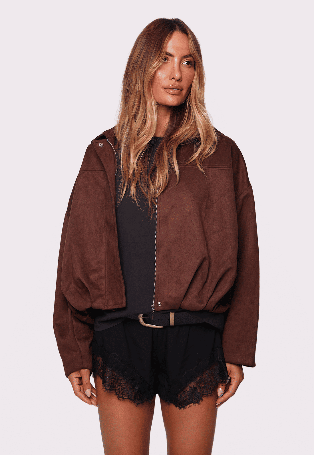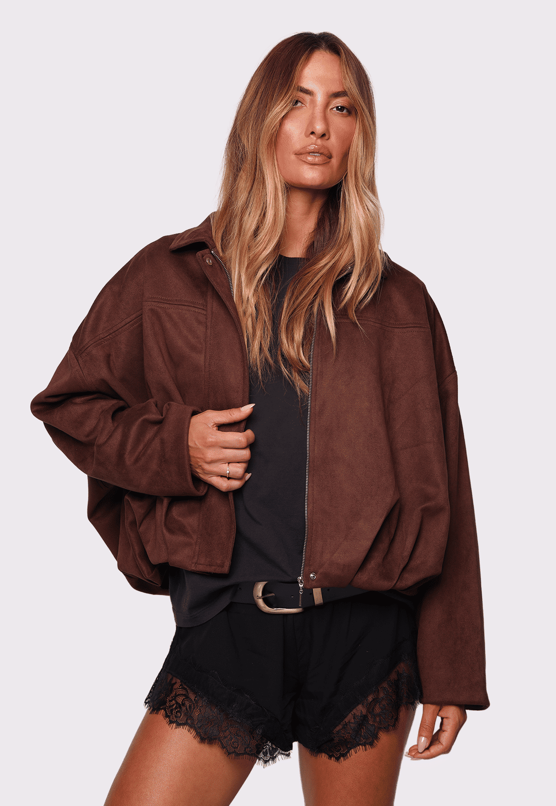 O fechamento em zíper e o shape mais curto equilibram perfeitamente produções com peças ajustadas ou mais fluidas, enquanto o tom marrom adiciona elegância e versatilidade às combinações. Ideal para sobrepor vestidos, blusas leves ou até looks mais urbanos, a Madison acompanha você do dia à noite com muito estilo.