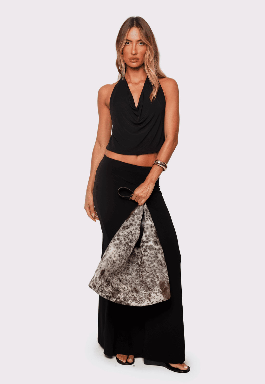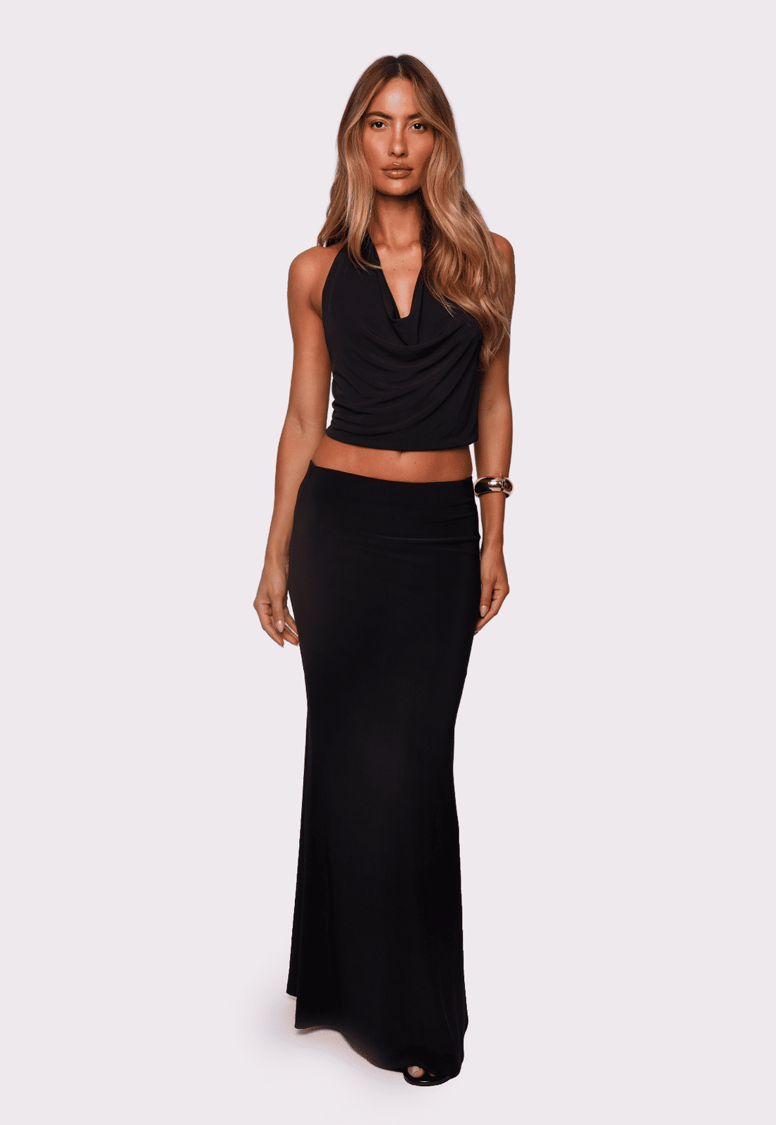 Confeccionada em malha macia e encorpada, ela possui comprimento longo e modelagem levemente ajustada no quadril, valorizando a silhueta de forma natural. O cós com elástico garante ajuste confortável ao corpo, enquanto o forro traz segurança e acabamento perfeito. Uma saia curinga que transita com facilidade entre produções noturnas sofisticadas e looks mais casuais do dia a dia.