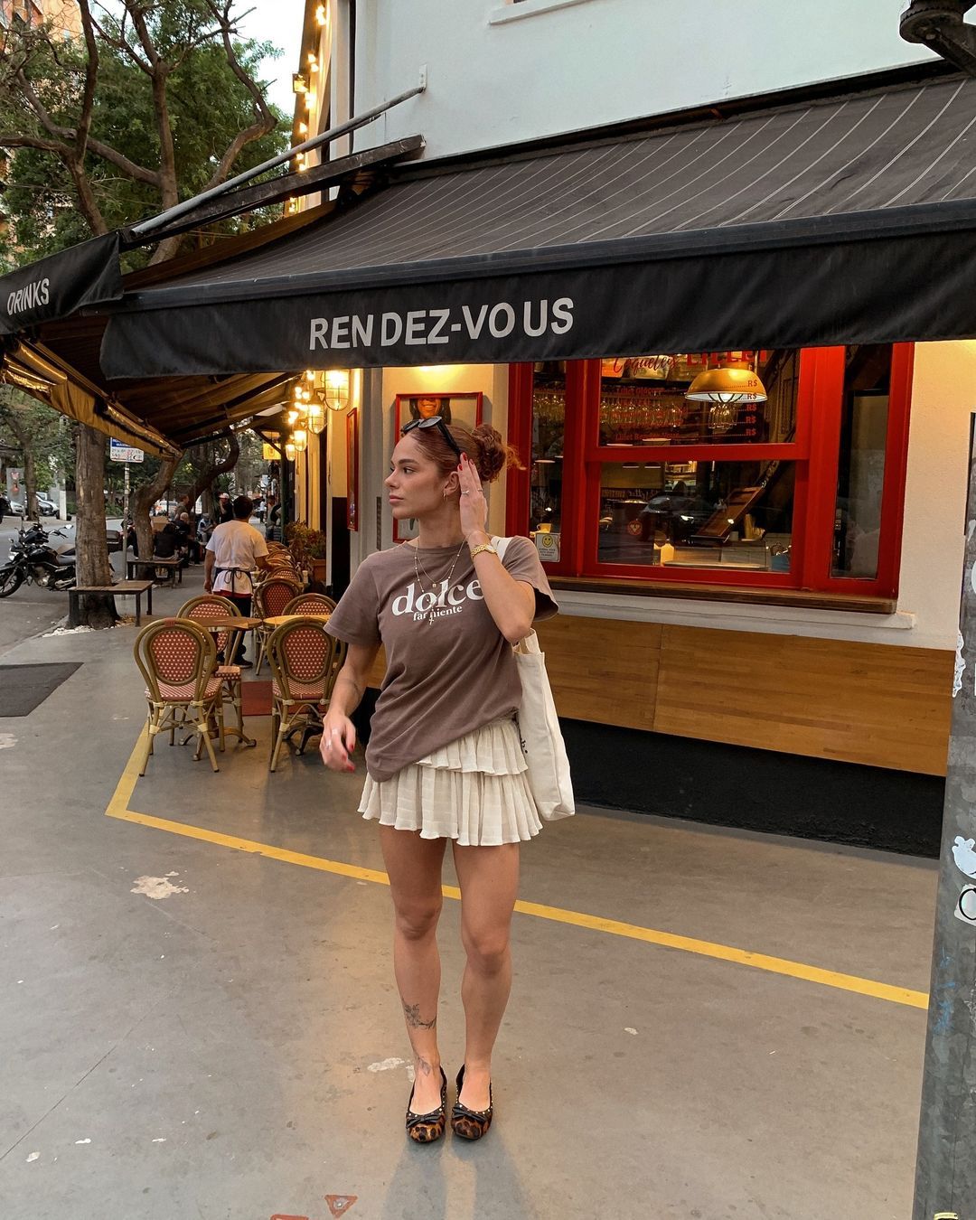 detalhe: t-shirt com lavação estonada localizada no peito, em italiano "dolce far niente", que significa em português "agradável ociosidade".