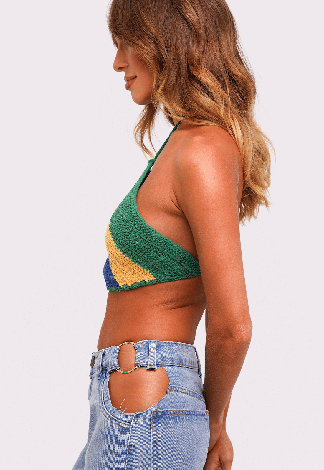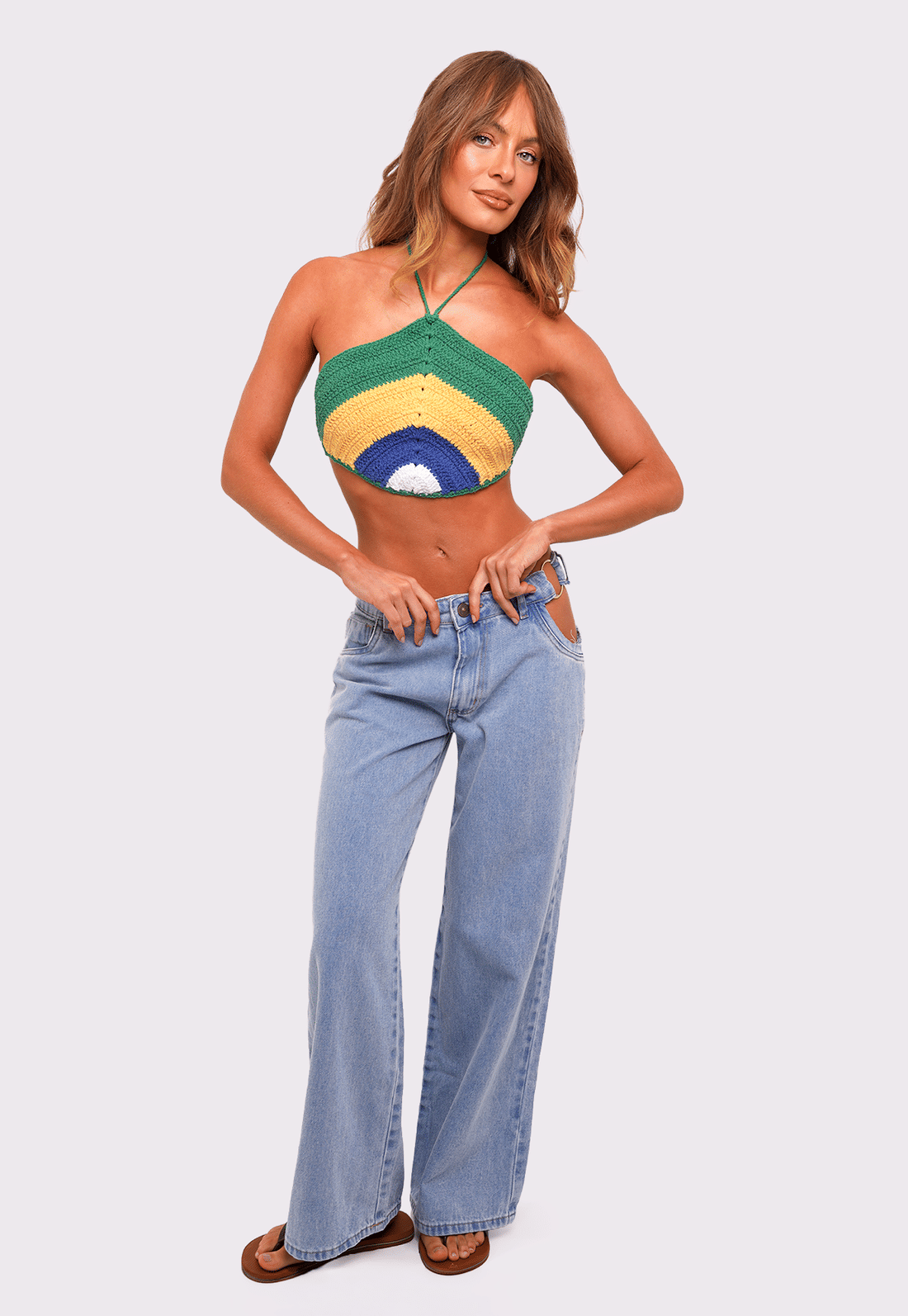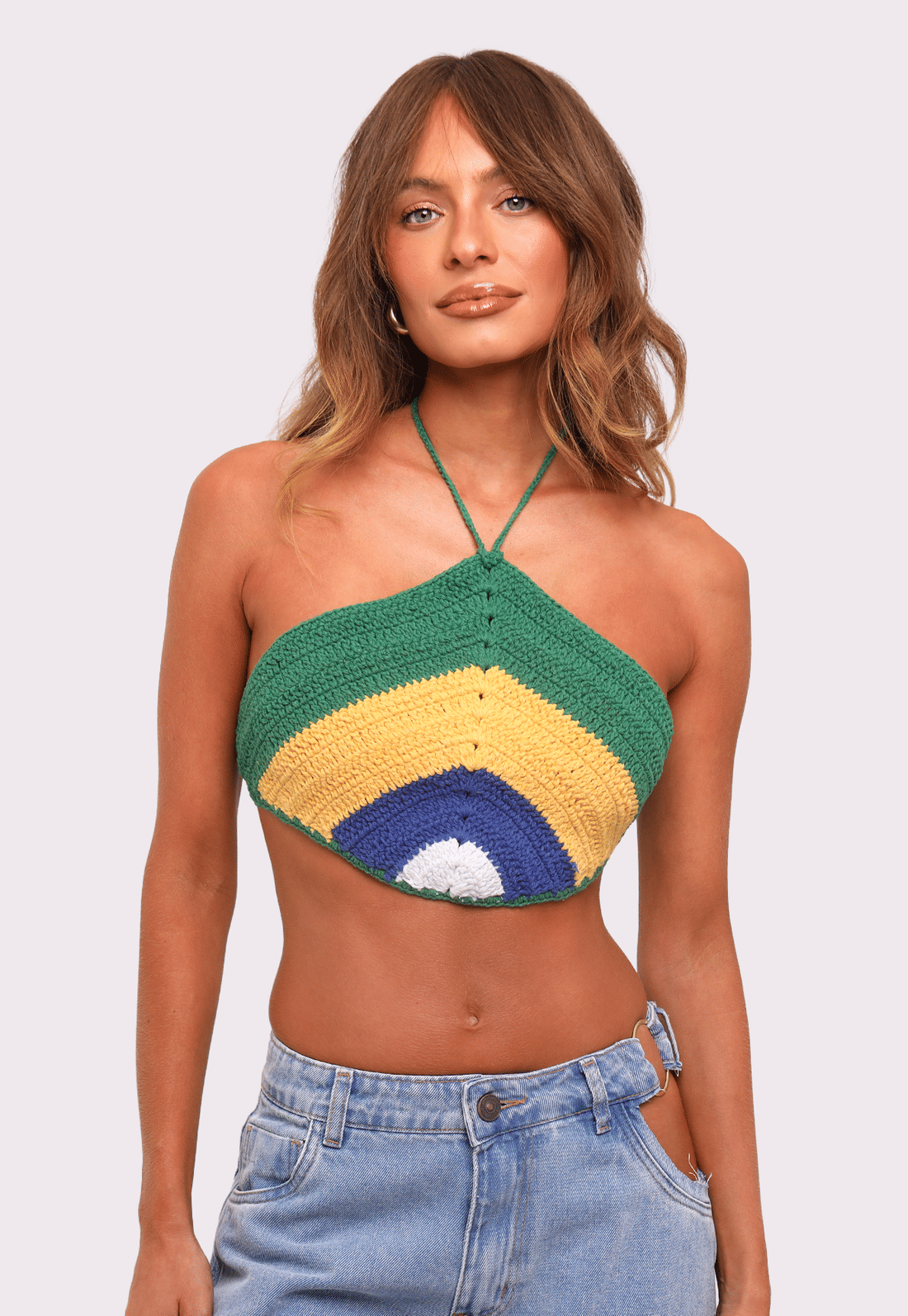 AdicionarO top brazilian energy chega com uma proposta marcante: o desenho frontal inspirado na bandeira cria um visual statement, cheio de personalidade e identidade. Em crochê e com modelagem frente única, ele valoriza o colo e traz um shape moderno, perfeito pra quem ama peças que se destacam.