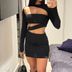 vestido com recortes e manga longa, aquele pretinho nada básico.