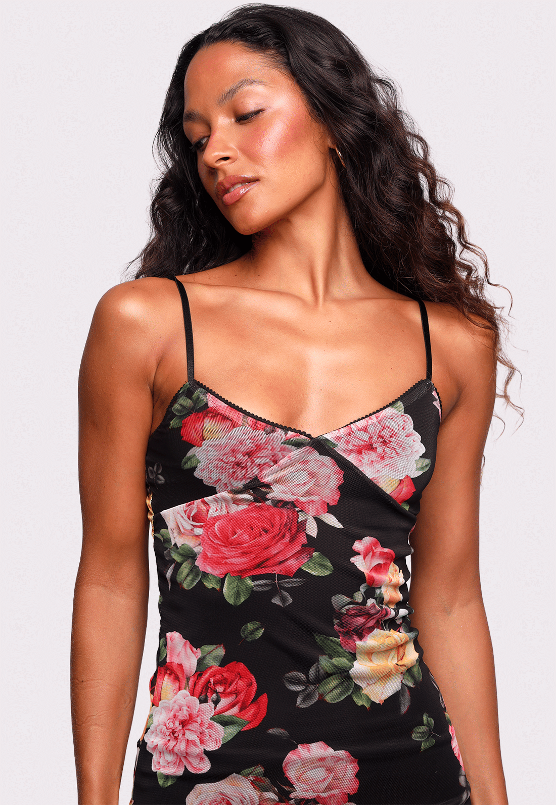 AdicionarO vestido rosalia curto carrega a estampa floral best seller da Mundo Lolita. Em tule estampado sobre fundo preto, ele tem modelagem justa que abraça o corpo, decote em V com recorte delicado no busto e alças finas com regulagem. O acabamento em rendinhas traz um toque romântico irresistível, enquanto o forro garante conforto e segurança no uso.